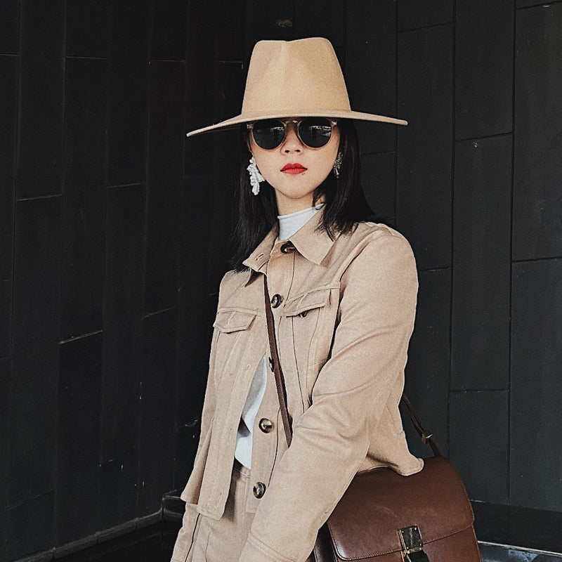 Hat room woolen big brim top hat